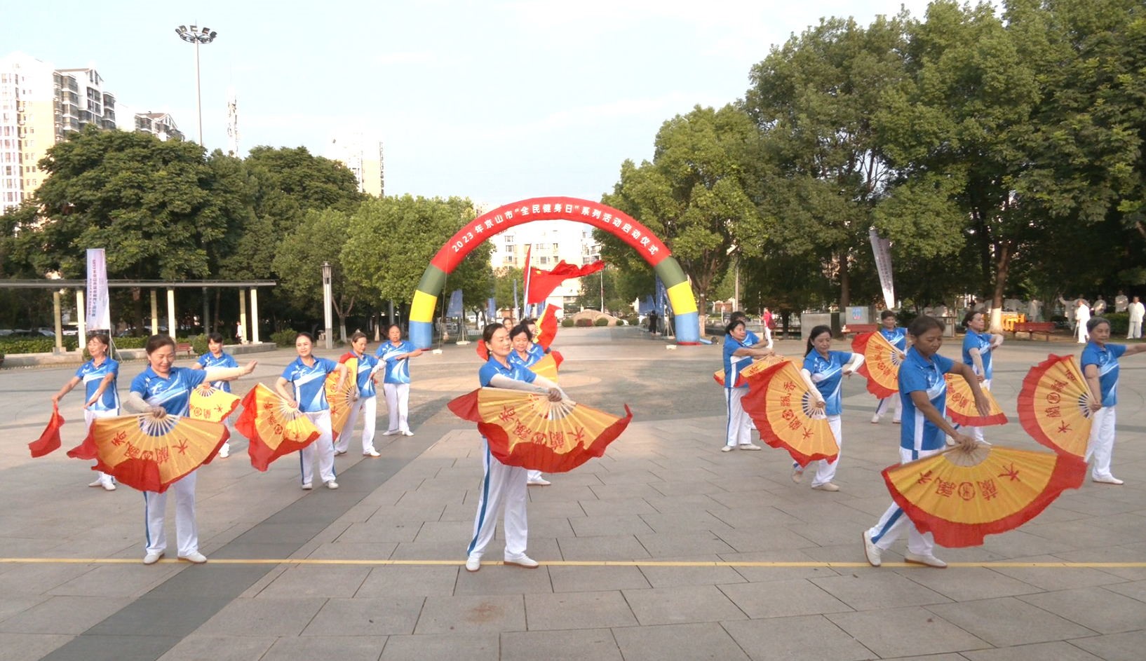 8月7日,2023年京山市“全民健身日”系列活动启动仪式在文峰网球主题公园举行。向全市17处文体广场,16个美丽乡村建设点、脱贫村,8处共同缔造点、人居环境整治点、文明城市建设点,以及文峰公园、人民广场等地负责人发放了50套全民健身器材。来自全市各体育协会、俱乐部的200余名健身爱好者代表,充分展现了京山人民健康时尚、朝气蓬勃的良好精神风貌。据了解,本次系列活动从8月1日起至31日结束。(全媒体记者 陈磊)