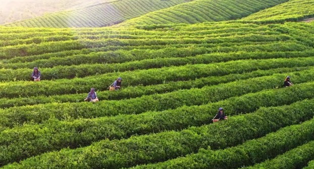 春风十里,不如一杯明前茶春风拂过,京山市宋河镇常家洞的千亩茶园,醒了。一垄垄茶树葱茏蜿蜒,嫩绿的芽尖缀满枝头,在风中轻轻摇曳。远山如黛,茶芽吐翠——好一幅绝美的茶园春色图!
